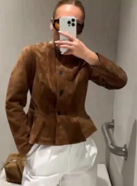 Womens Suede Long Sleeve Jacket Oversized Bomber Coat Zipper Pockets